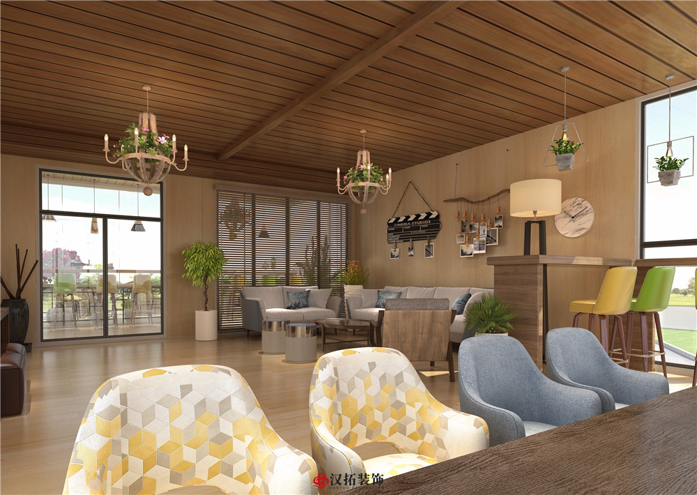 設(shè)計(jì)說(shuō)明:預(yù)算:58萬(wàn) 整體采用森系的設(shè)計(jì)風(fēng)格,隨處可見的綠色搭配著溫暖的色調(diào),綠蔭蔥油的植被包圍著甜味詩(shī)意,靜謐的空間瞬間能感染來(lái)訪者。光線通透明亮,邊喝咖啡邊曬太陽(yáng),讓人遠(yuǎn)離城市的喧囂,沉浸其中。